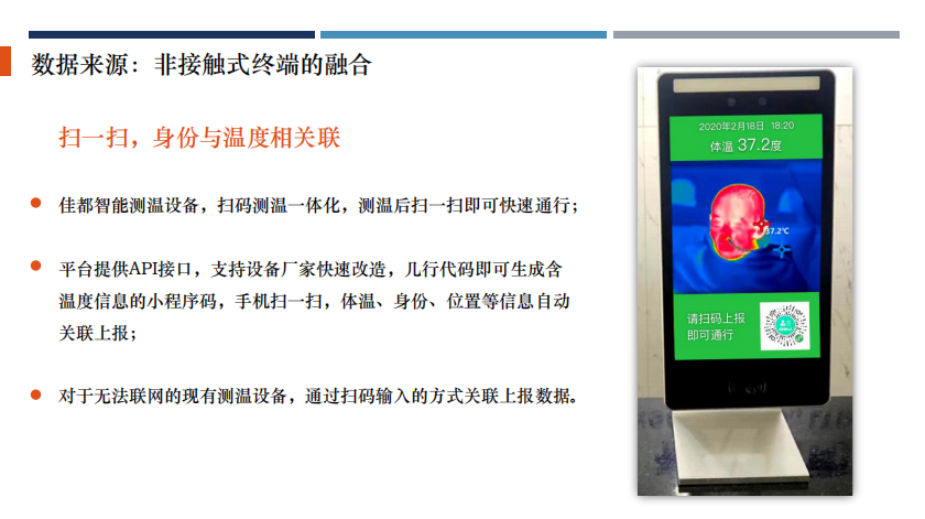 乐玩lewin科技智慧城市业务群产品经理袁名人分享了“非接触经济跟智慧城市新产品结合”的案例。“非接触型经济”已然崛起,其中的技术代表在对抗疫情过程中,发挥着重要的作用。数据采集,如测温、人脸等,加之与视频、地图等方面的融合,将在各个场景中达到非接触效果的最大化。而这些数字化、智能化的沉淀,正在以”非接触“的形式惠及更多的行业与社会公共事务。